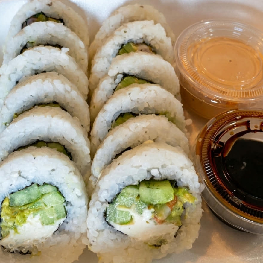 (Alga por fuera), relleno de atún, queso crema y aguacate. Puntos de Tampico