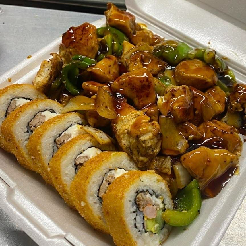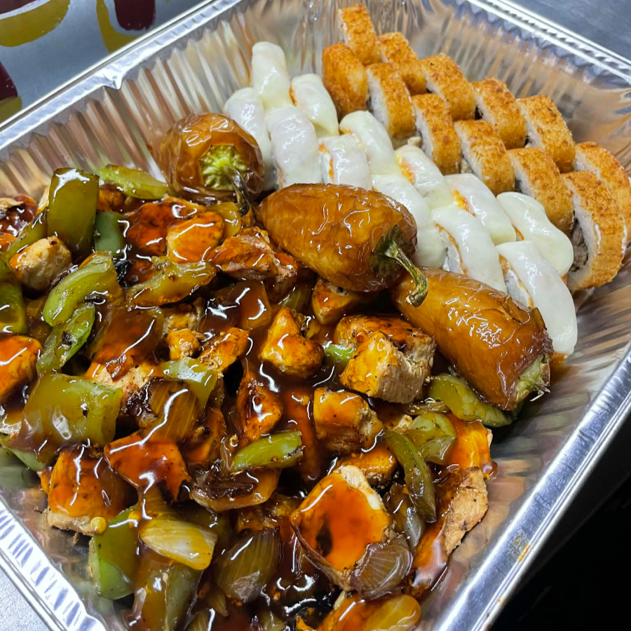 Mitad teriyaki y ½ rollo de sushi empanizado o natural.