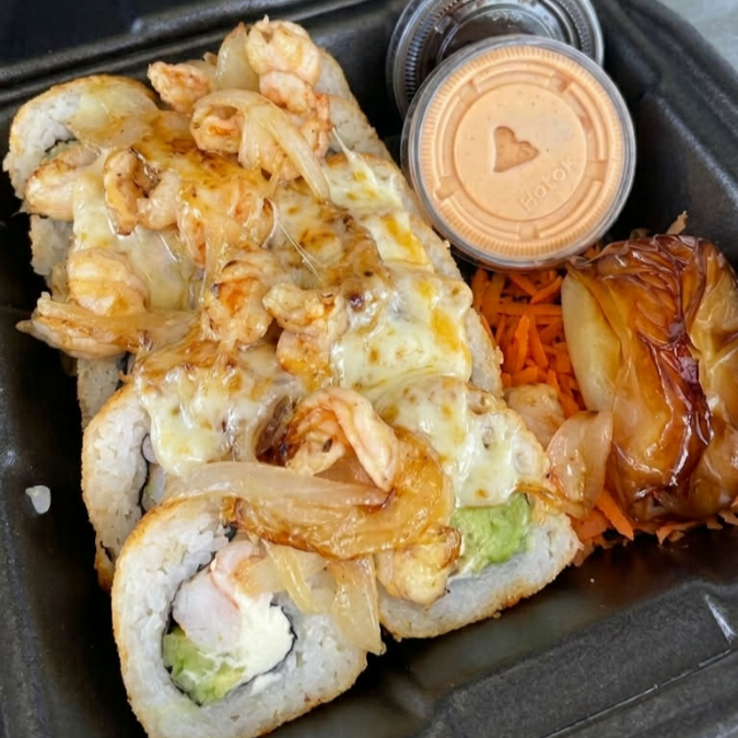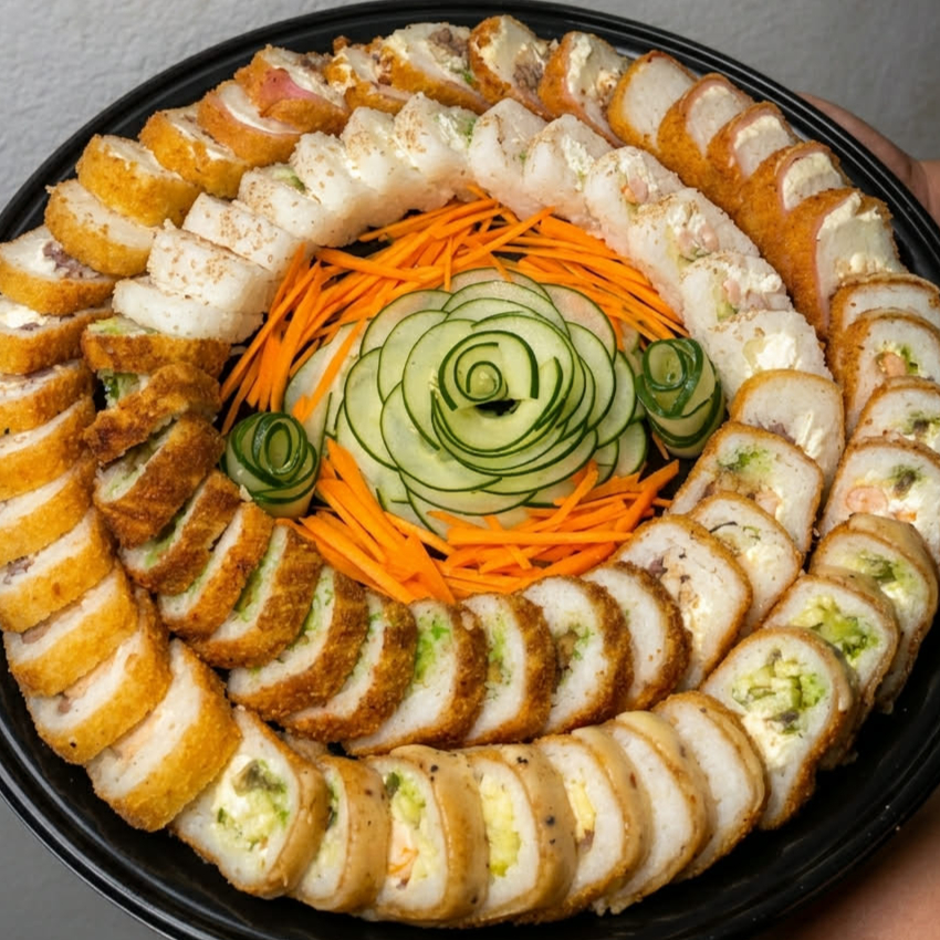 ½ Rollo de sushi kanikama empanizado o natural, y mitad boneless (BBQ o buffalo).