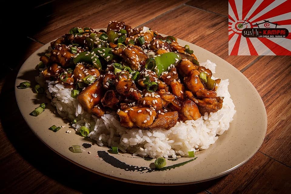 Sushi bola de pollo + Medio teriyaki de pollo.