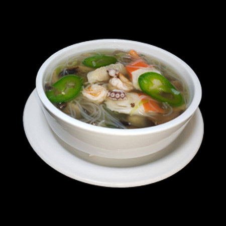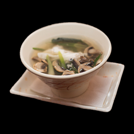 Sopa de pollo, champiñones, clara de huevo, espinaca, cebollín y arroz.