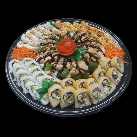 1/2 charola teriyaki, 1 cmt, 1 california de surimi, y tampico roll y cheese roll.