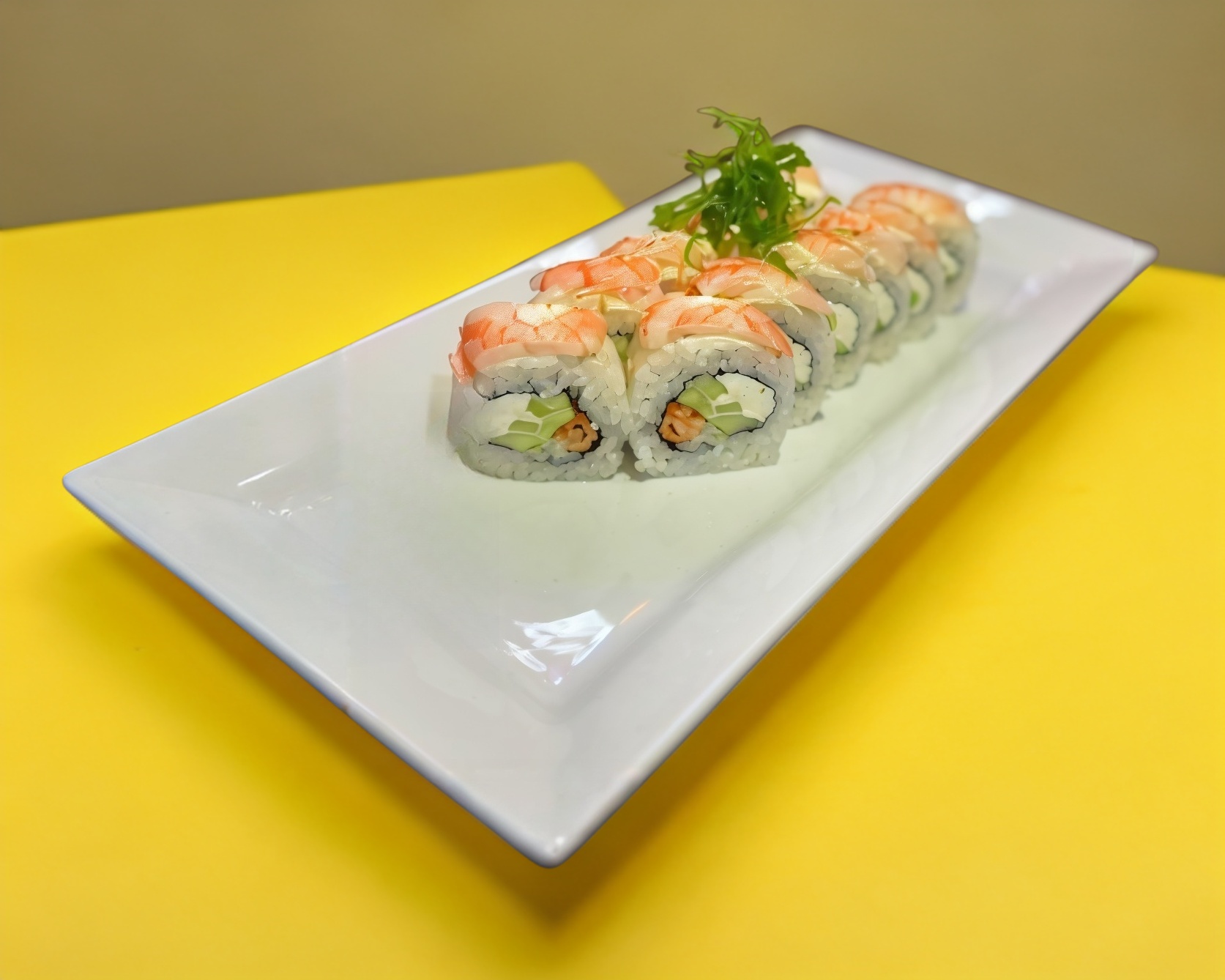 Rollo natural, camarón, salsa de mango, aguacate y philadelphia.