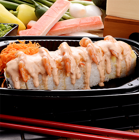 Rollo empanizado, relleno de camarón, pepino, queso philadelphia y tocino, gratinado y bañado con aderezo chipotle.