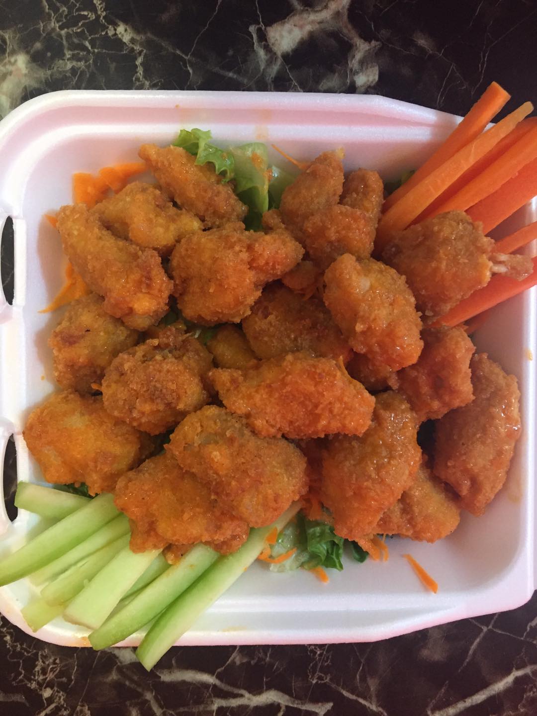 1/2 teriyaki de pollo, 1/2 rollo cangrejo o pollo, ensalada y té.