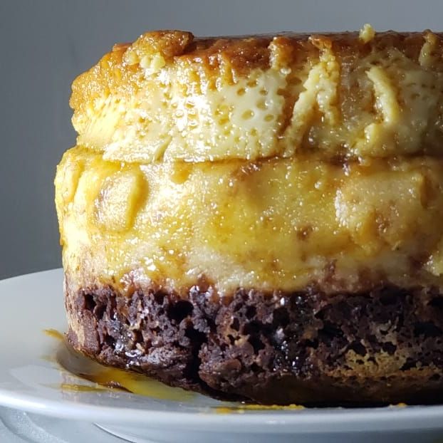 Delicioso postre conformado con 3 pisos de puro sabor (flan napolitano, pay de queso, pastel de chocolate).