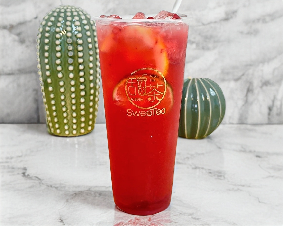 Refrescante te verde con fresa y pitaya con un toque de limón.