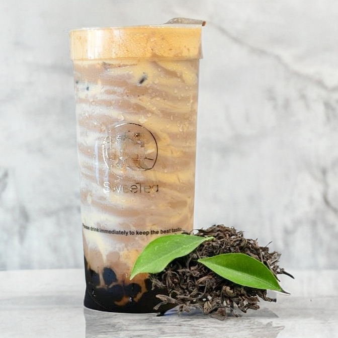 Combinación de house milk tea, té negro con crema brulee 700 ml.