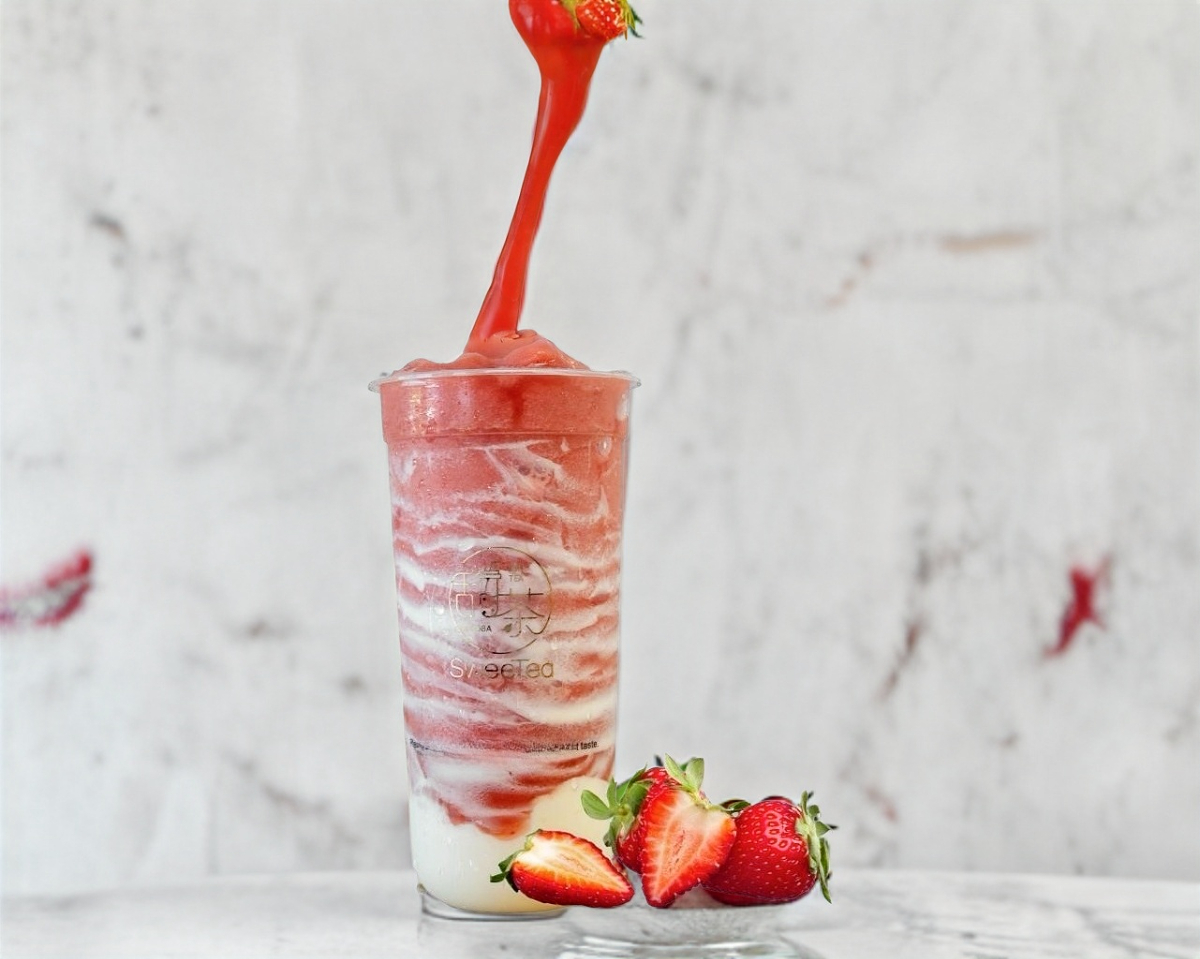 Smoothie de fresas con té de jazmín y un toque de cheese foam 700 ml.