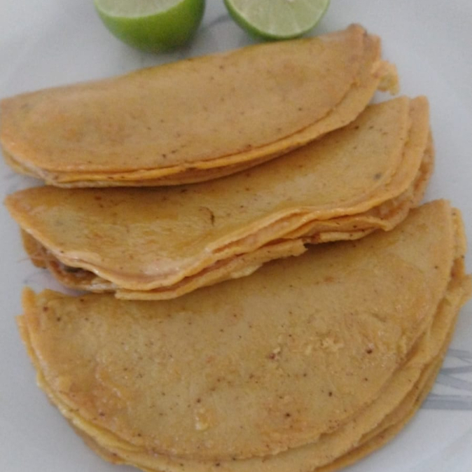 Taco al vapor relleno de chicharrón prensado guisado en salsa tradicional.