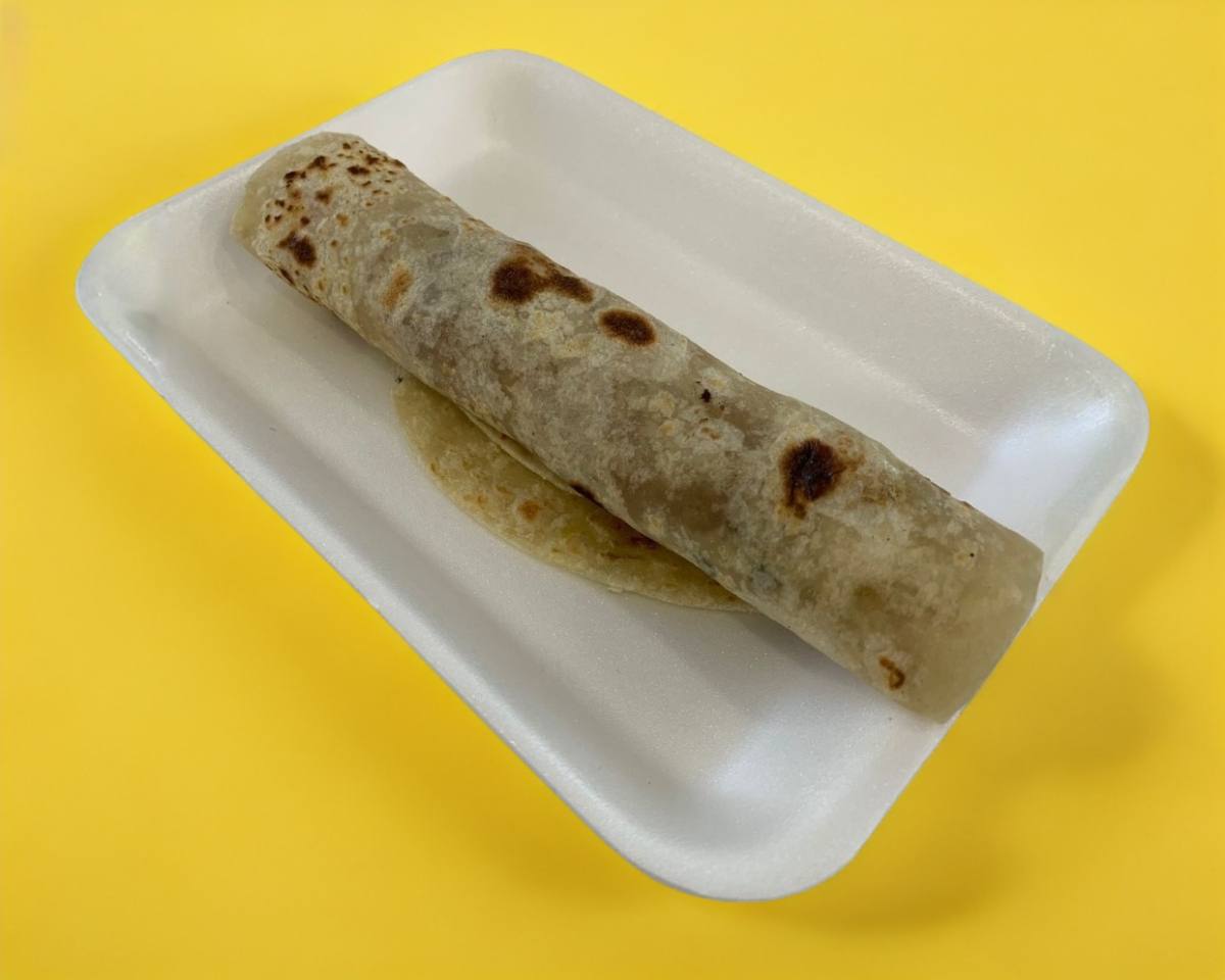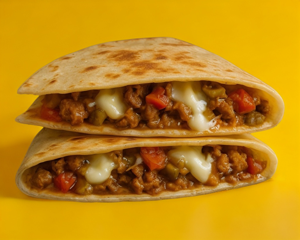 Carne deshebrada con tomate, pimiento morrón y cebolla, todo salteado y servido en tortilla de harina.