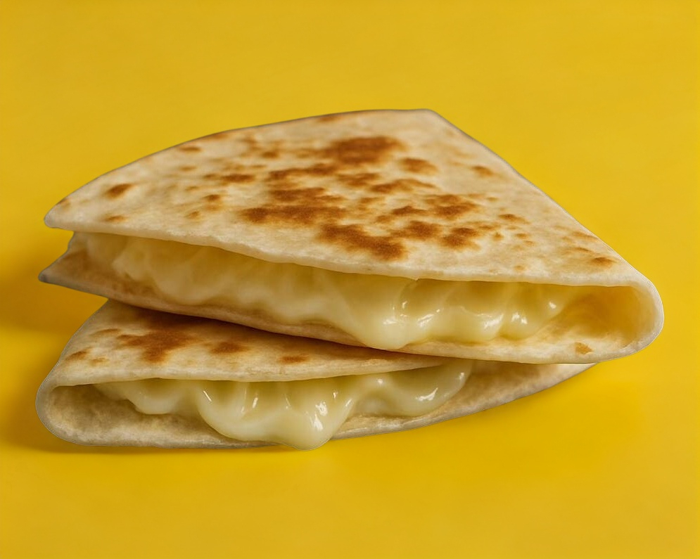 Tortilla rellena de queso derretido, dorada al momento.