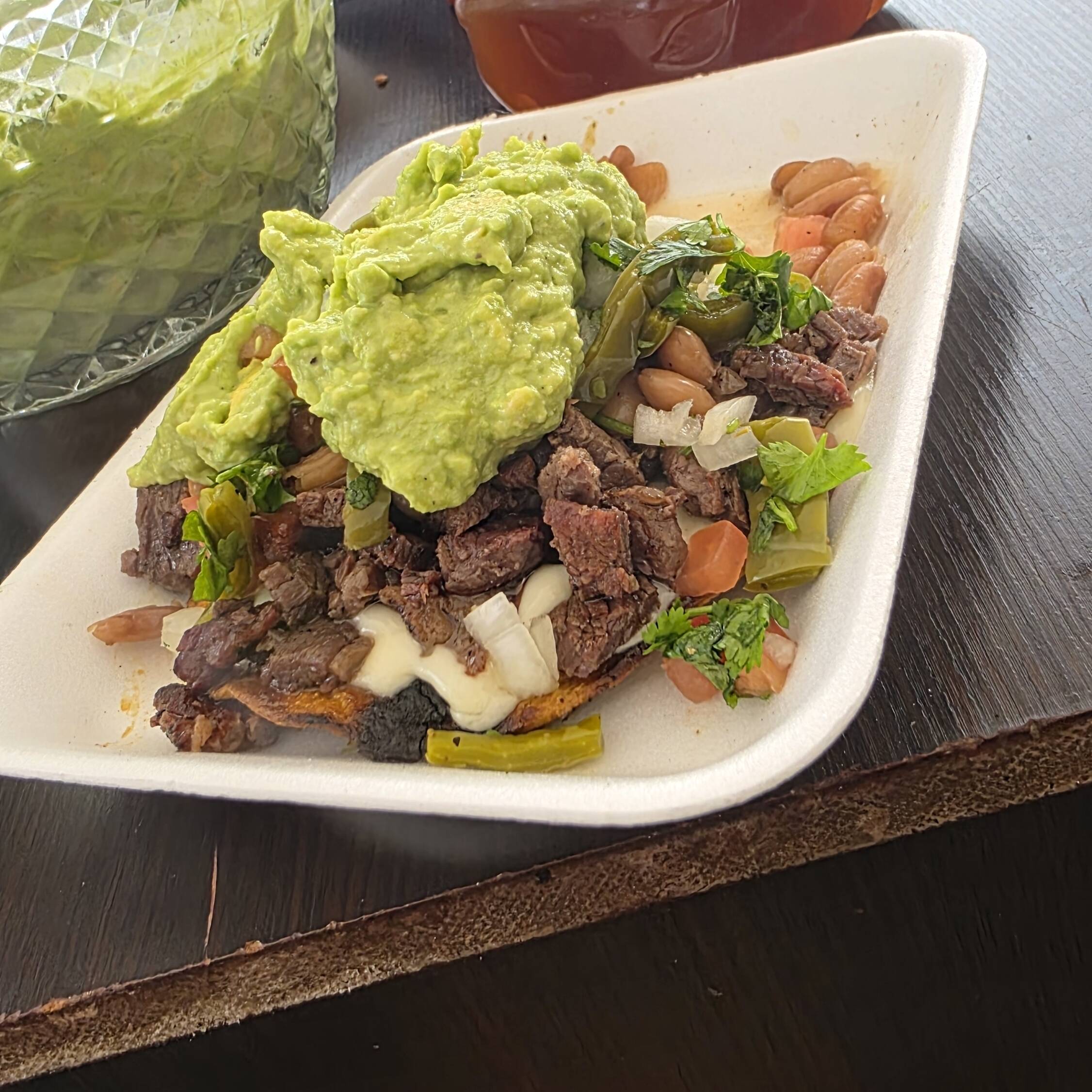 Tostada al carbón con carne asada