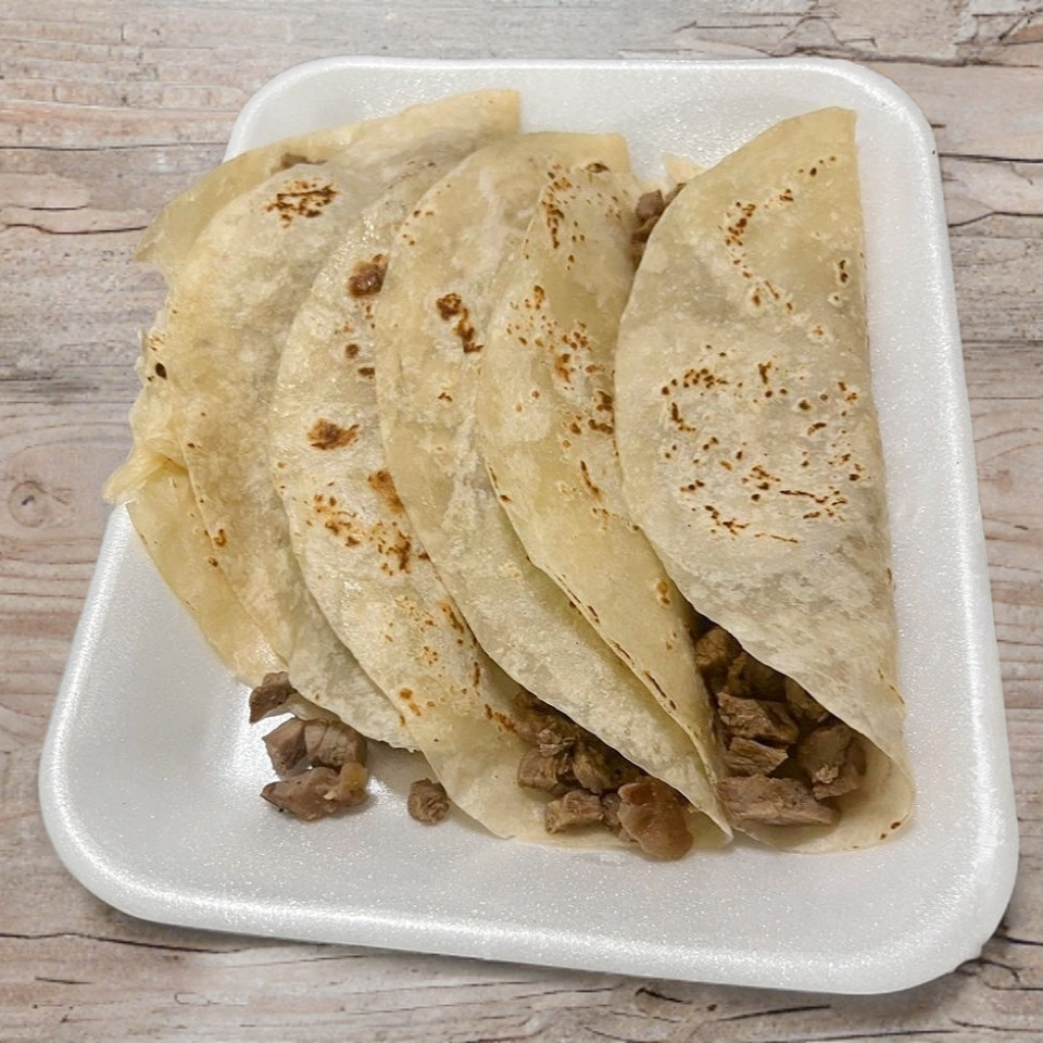 Taco de Carne Asada tortilla puede ser de Maíz o de Harina, con 5 complementos a elección, para que escojas el que más te guste.