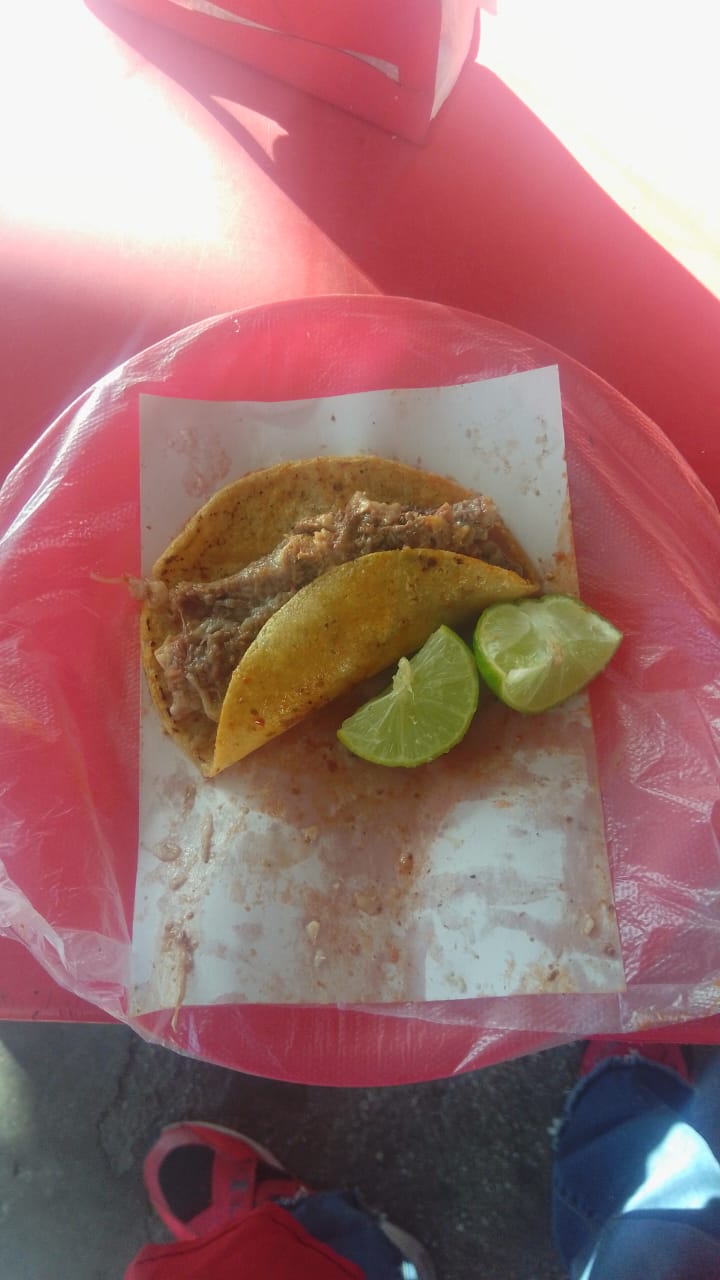 Taco con carne de borrego cocida lentamente, servido en tortilla de maíz o harina con cebolla, cilantro, repollo y salsas tradicionales.
