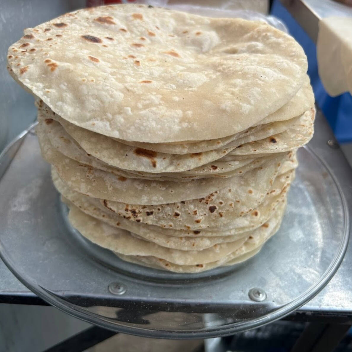 Tortilla de harina con frijol, omelette con jamón y queso con una cucharada de chicharrón con pierna