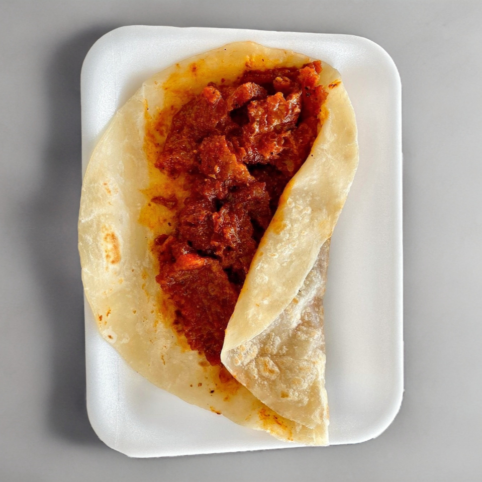 Taco relleno de deliciosa machaca guisada con especias.