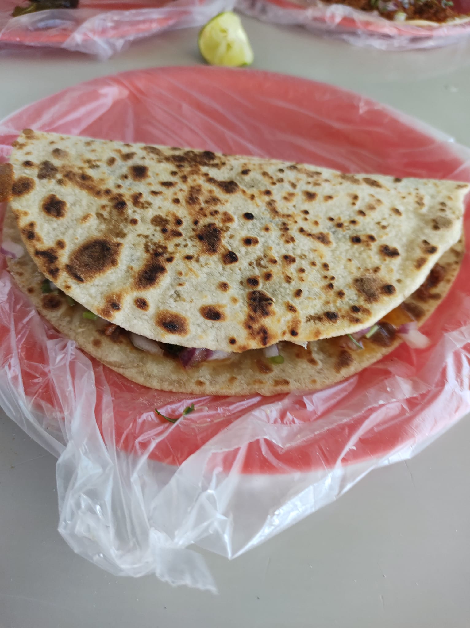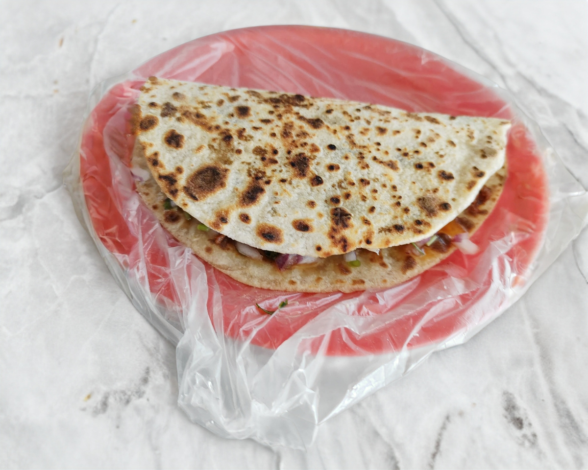 Platillo Personal – Con queso, aparte ;cebolla curtida, cilantro, cebolla fresca y salsas roja y verde.
