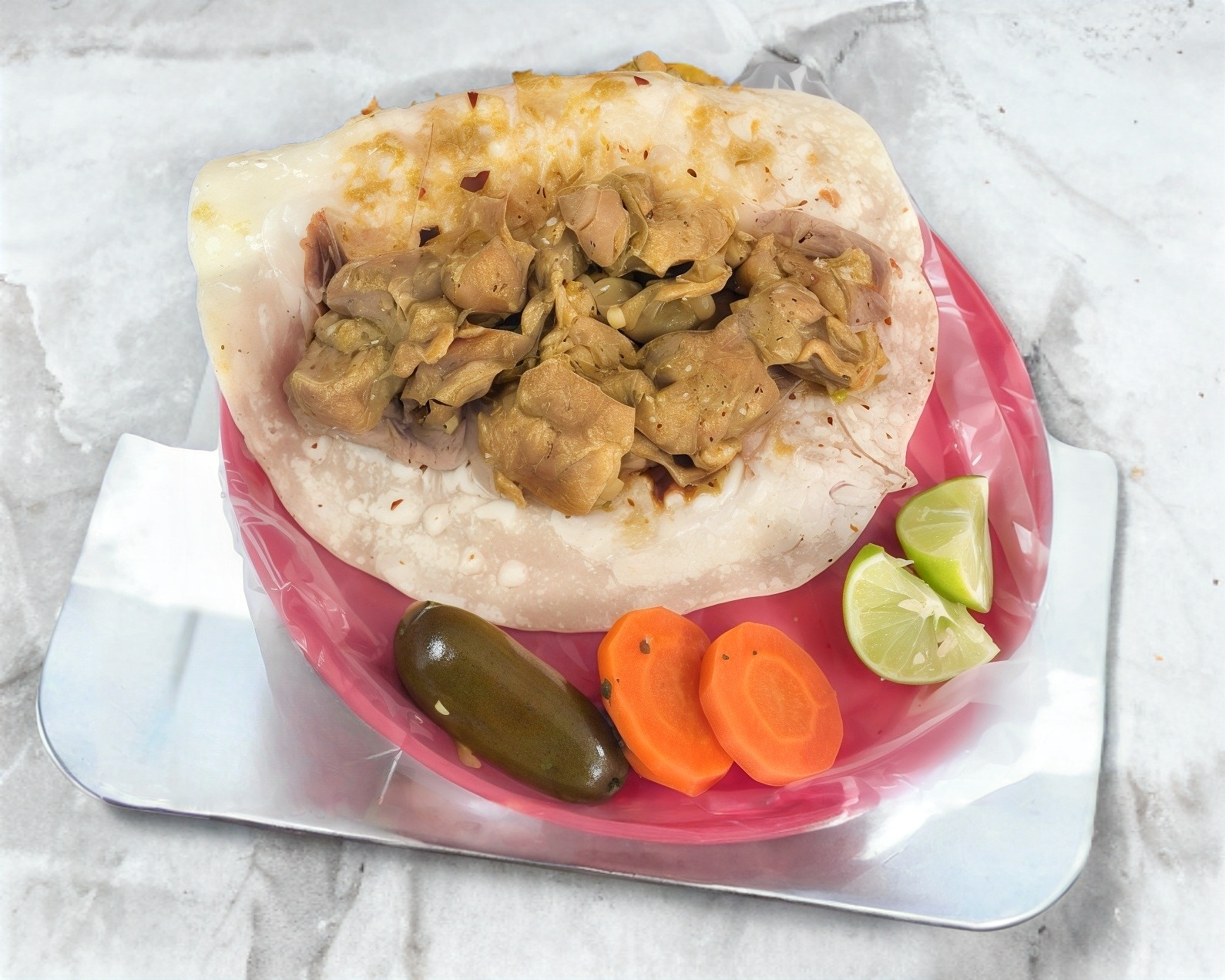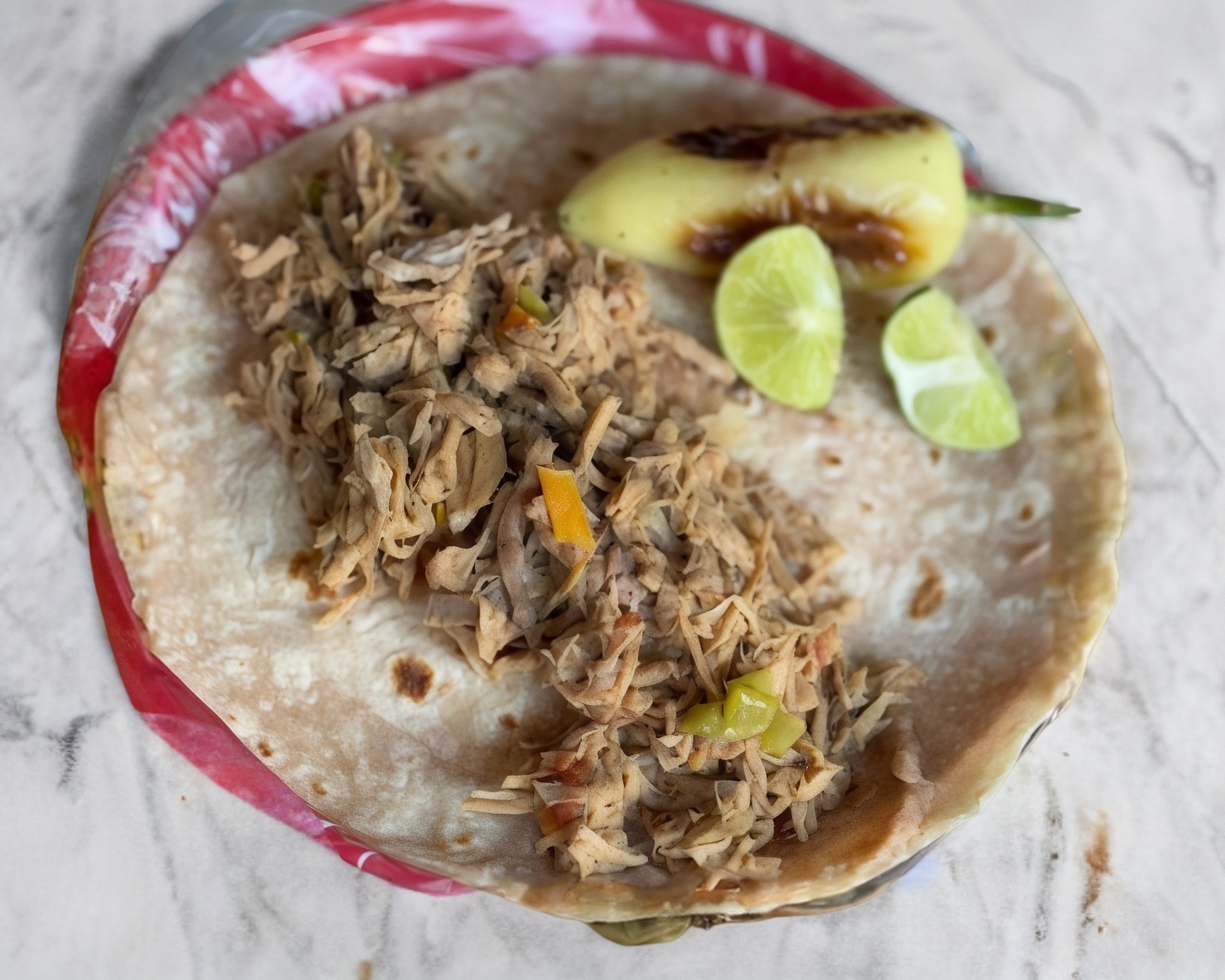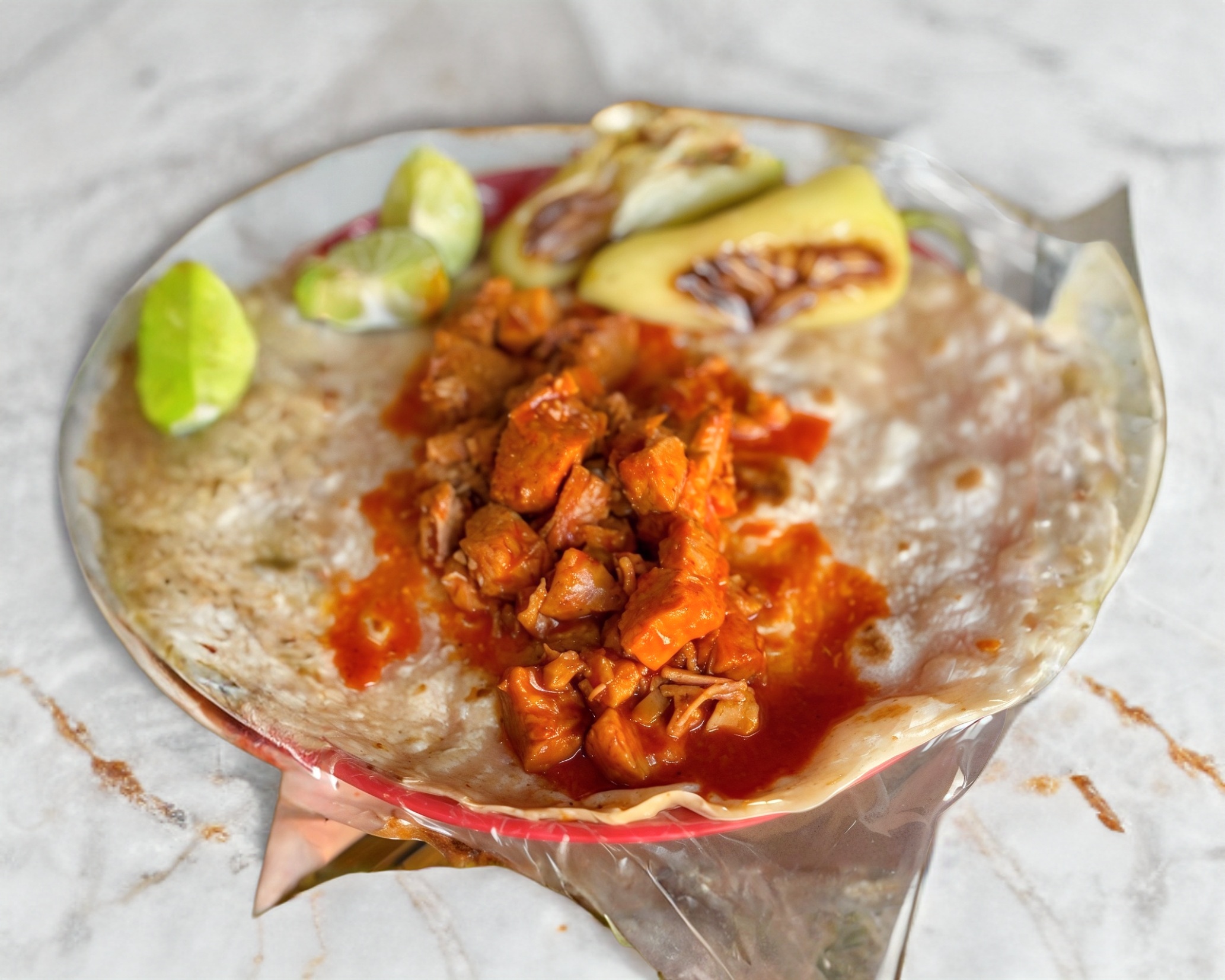 Quesadilla con Pierna de Puerco en Chile Rojo
