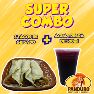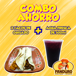 2 Tacos de Guisado + 1 Agua Fresca de 1/2 Litro