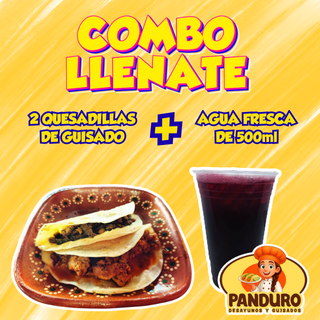 2 Quesadillas de Guisado + 1 Agua Fresca de 1/2 Litro