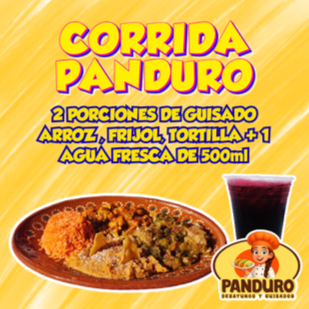 2 porciones de guisado, arroz, frijoles, 2 tortillas y agua fresca de 1/2 litro.