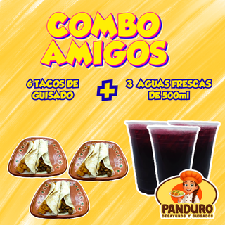 6 Tacos de Guisado en Harina + 3 Aguas Frescas de 1/2 Litro
