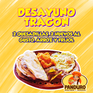 Dos quesadillas con guisado, 2 huevos al gusto, frijoles y arroz