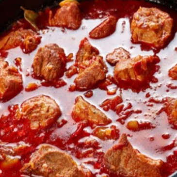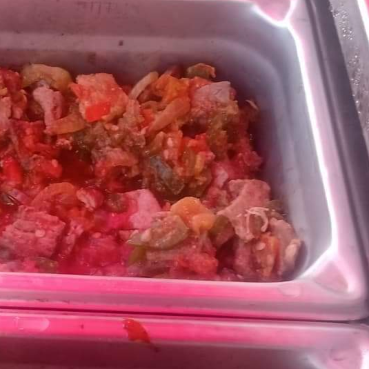 Pulpa bola de res cortada en cuadritos cocinada con verduras chile tomate cebolla