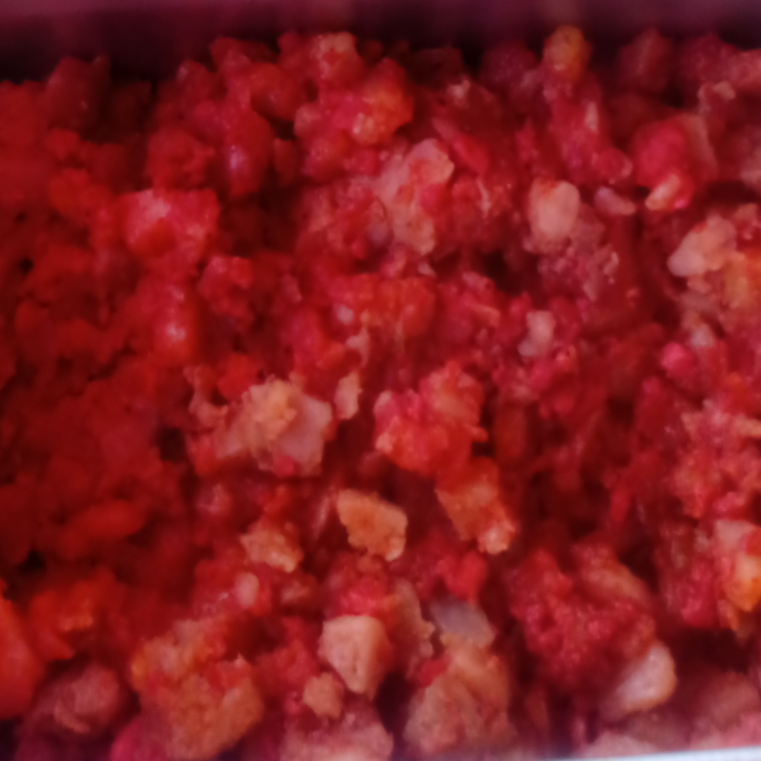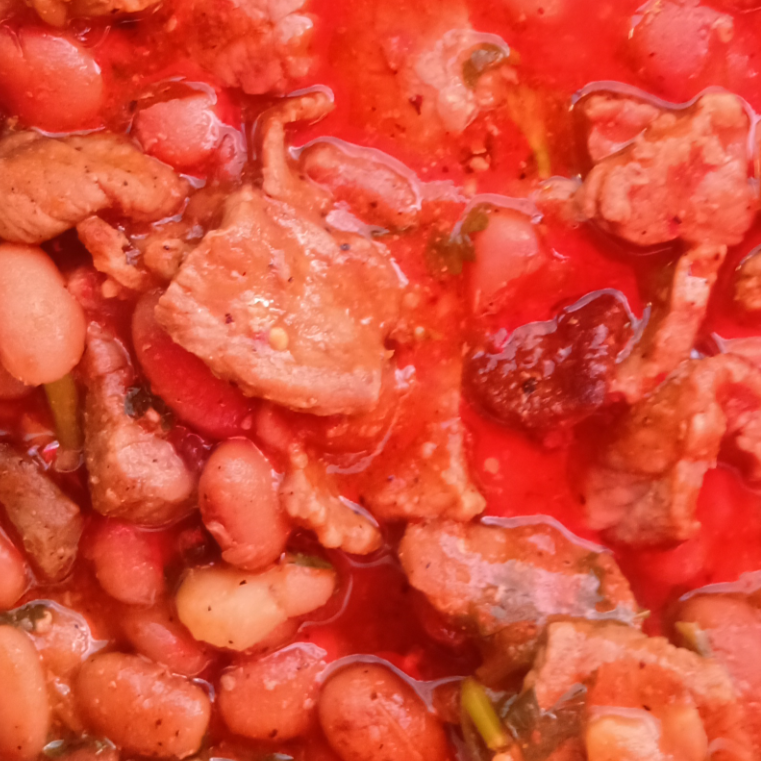 Pulpa bola cortada en cuadritos con frijol entero en salsa