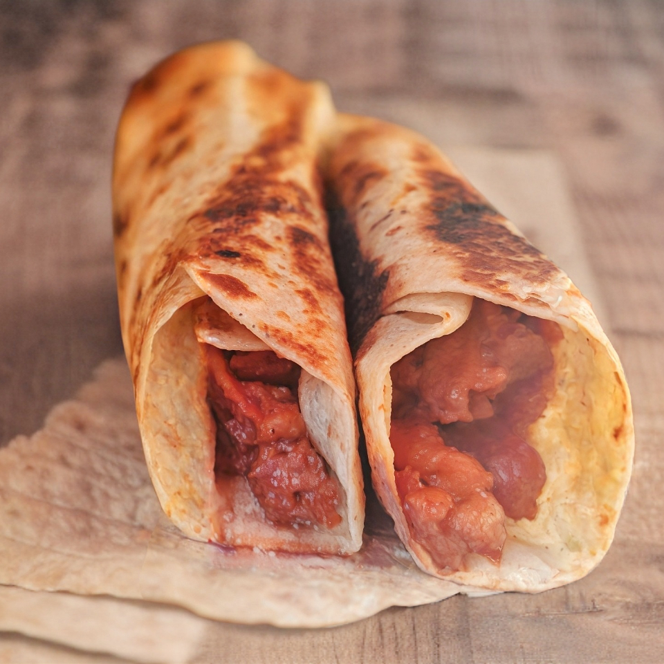 TACO DORADITO DE CHICHARRON PRENSADO CON FRIJOL