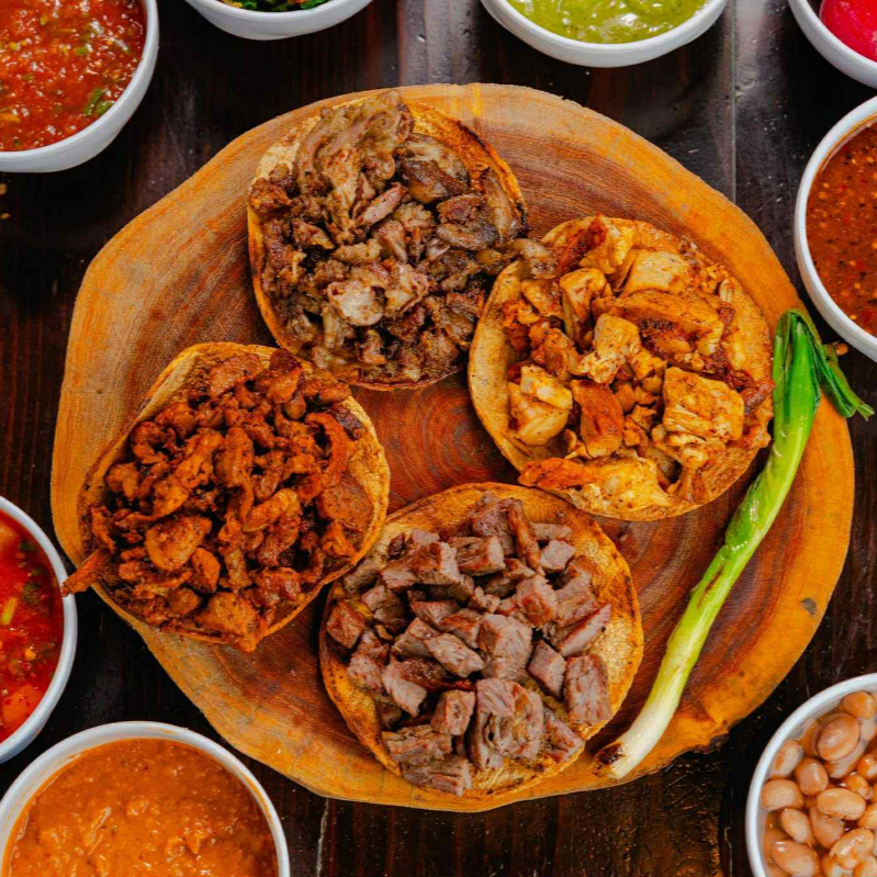 orden de carne con tortillas y salsas