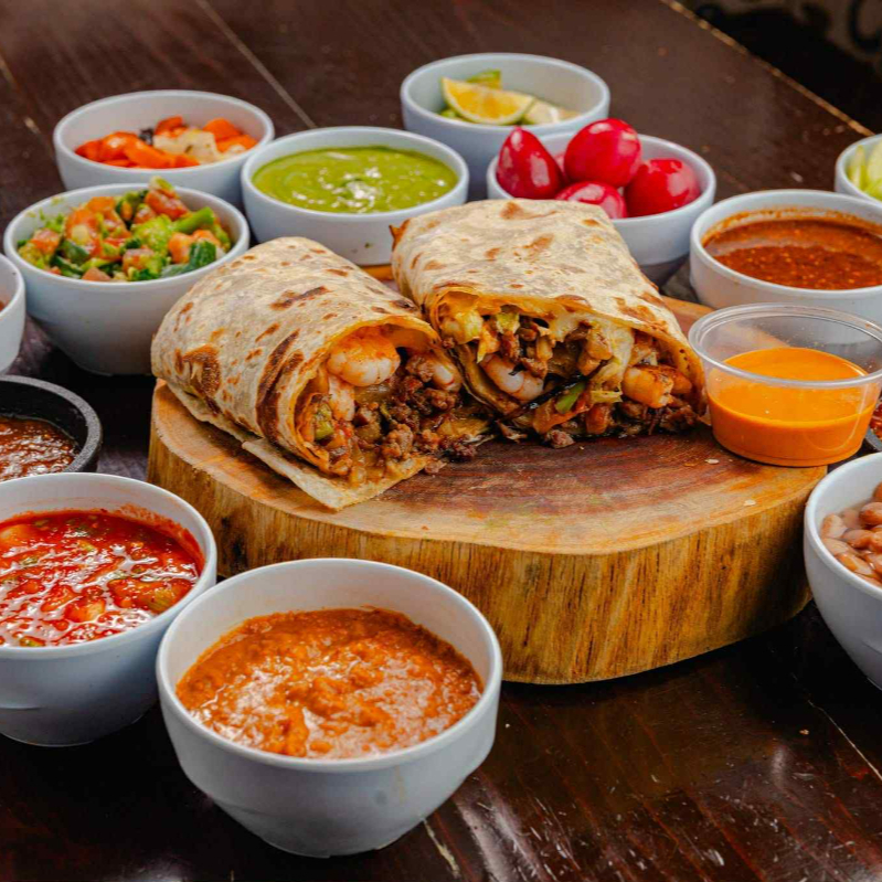 burrito con carne de pastor pollo carne y tripa y queso