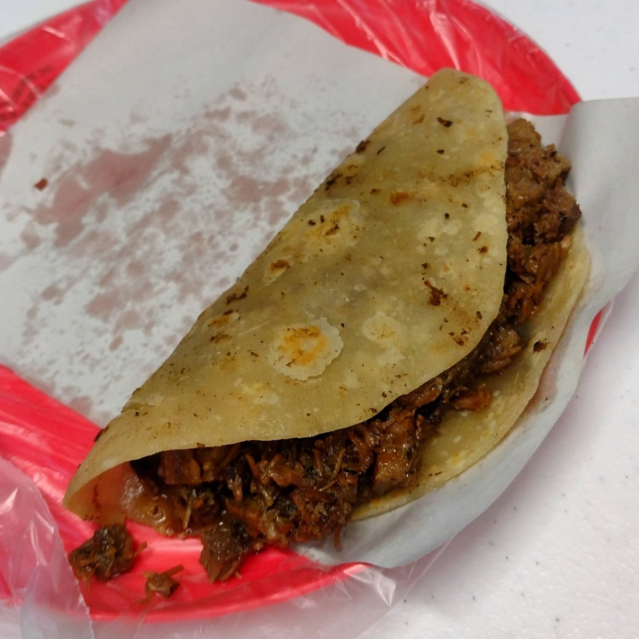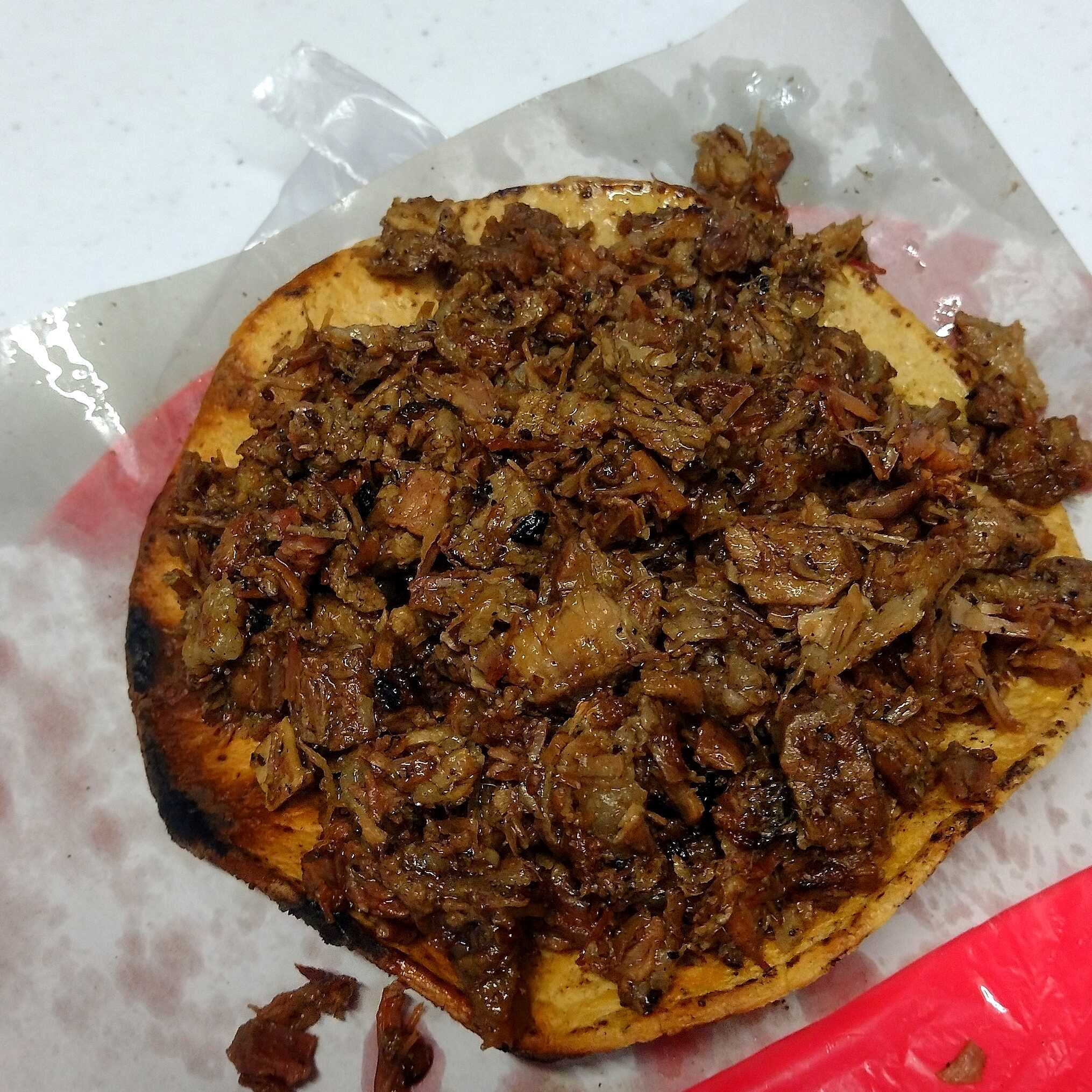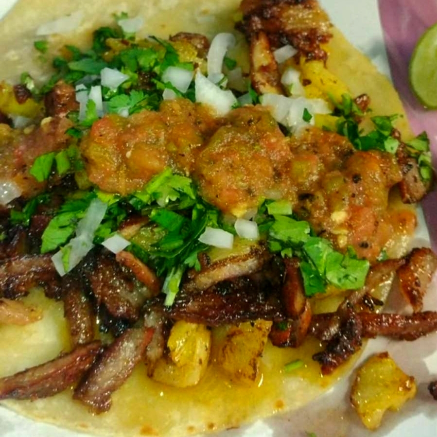 tortilla de maiz o harina con pastor con cebolla y cilantro