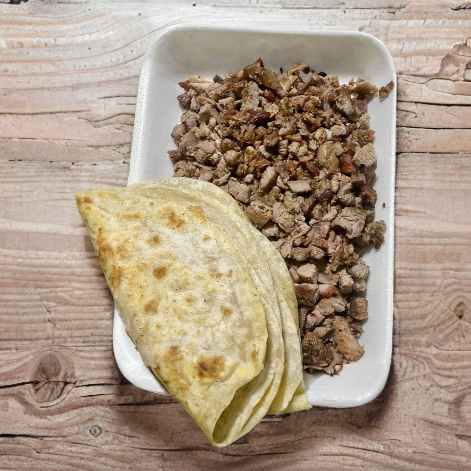 media orden con 7 tortillas, una quesadilla sencilla, carne a elegir y todas sus verduras