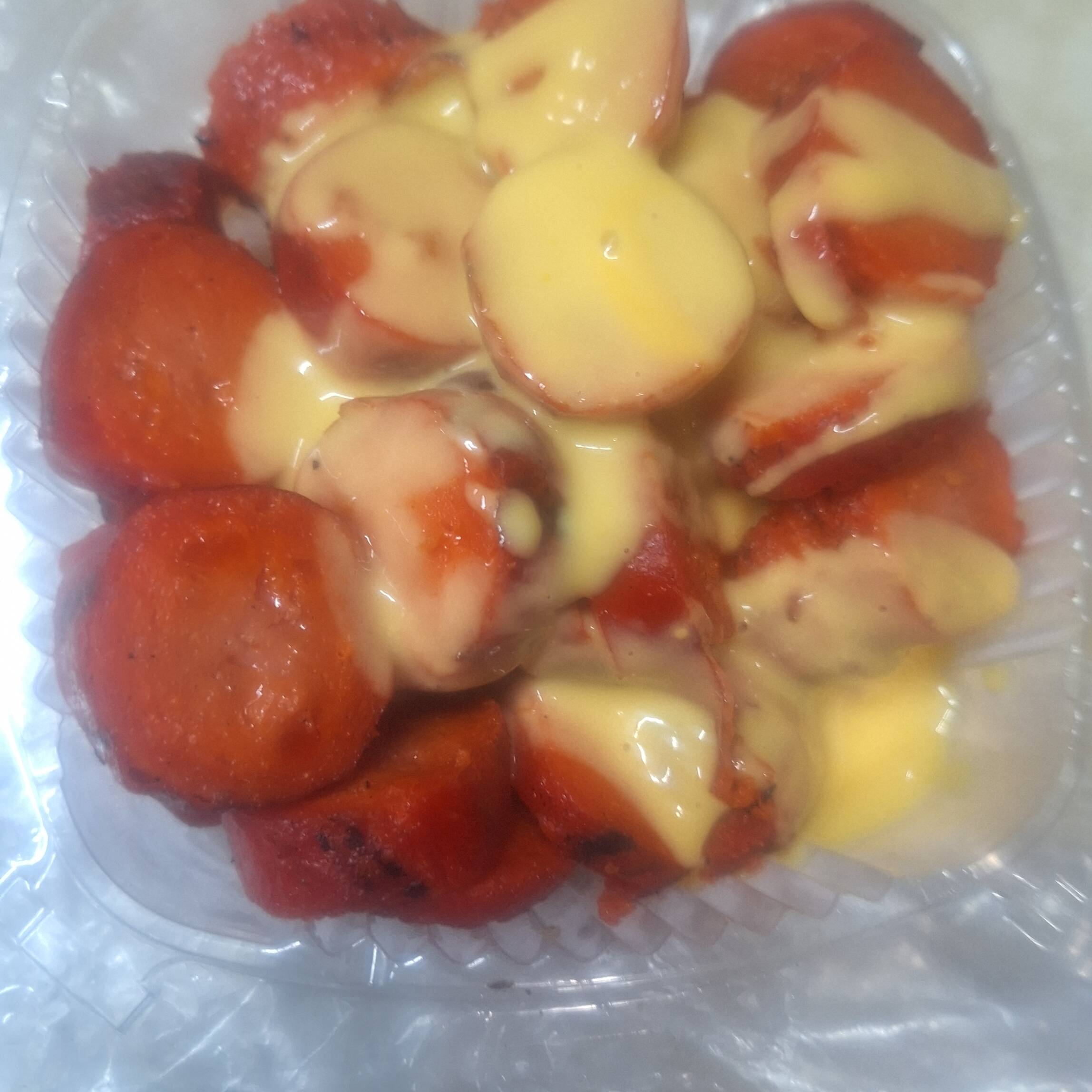 pan con mayonesa, frijol refrito, carne a elegir con una costra de queso monterrey arriba