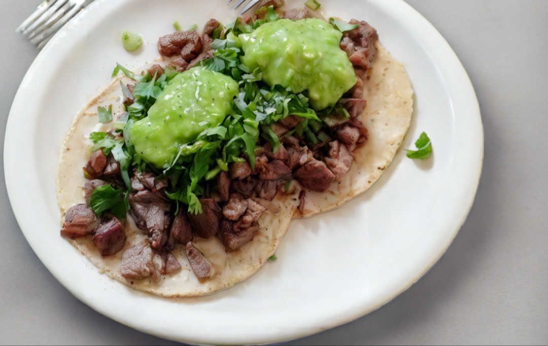 Tortilla de Maíz,Carne Asada, CarnePastor, Cilantro Cebolla,Aguacate,Salsa,Repollo, Banderita,