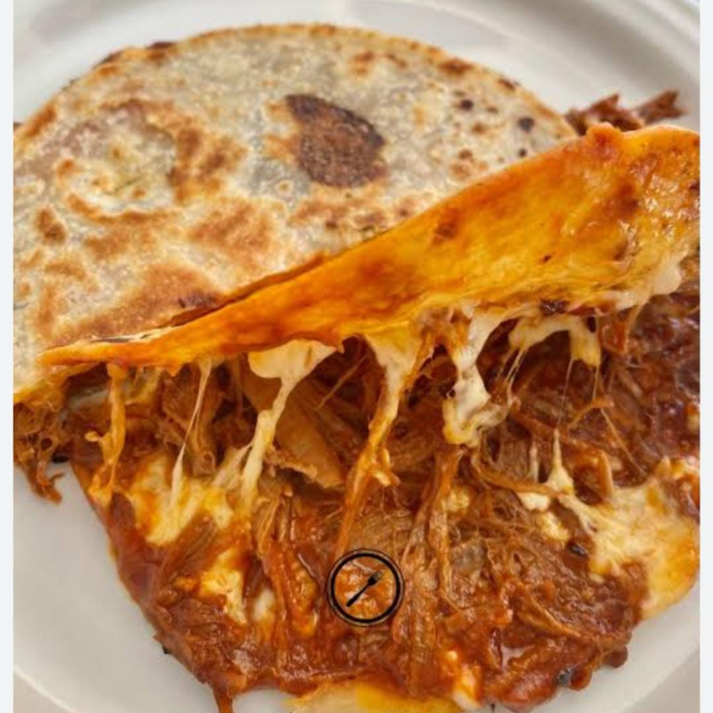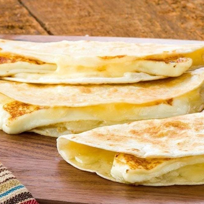Tortilla de harina recién hecha con queso fundido y tu guisado favorito.
