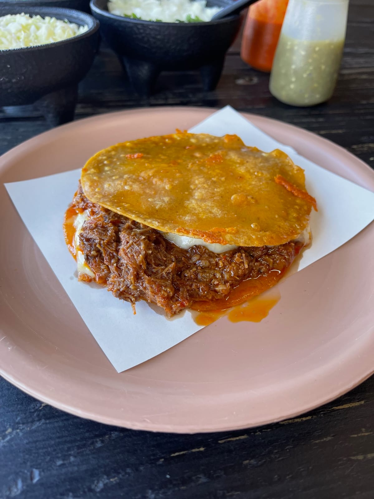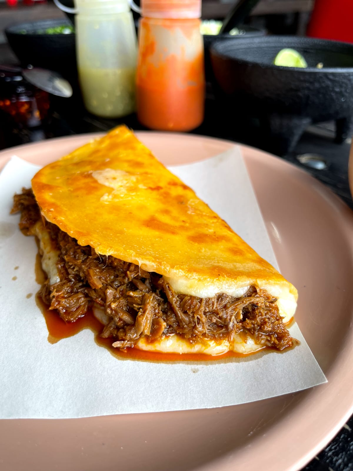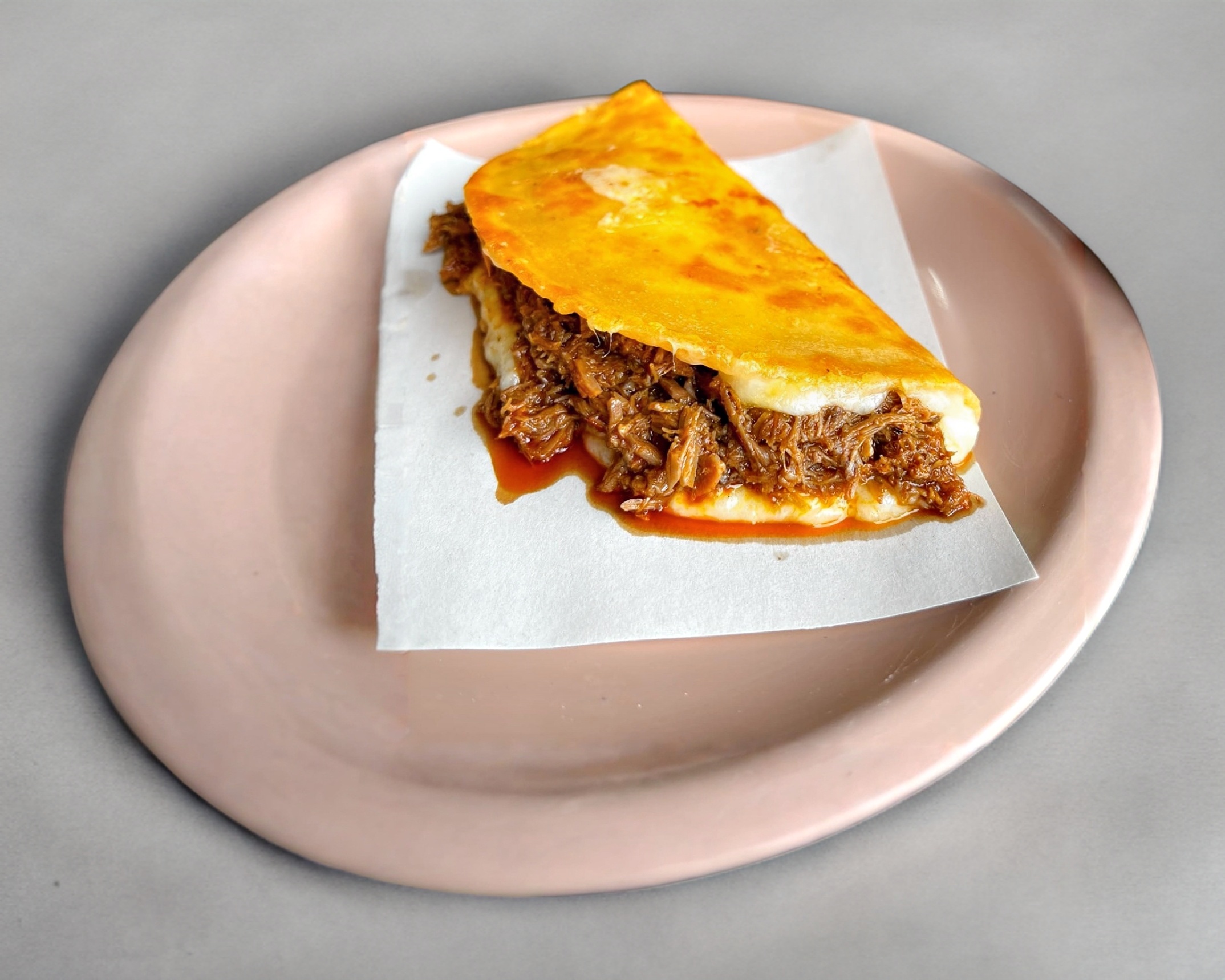 Deliciosa quesadilla con doble tortilla de maíz, al centro nuestra deliciosa carne a tu eleccion y mucho queso.