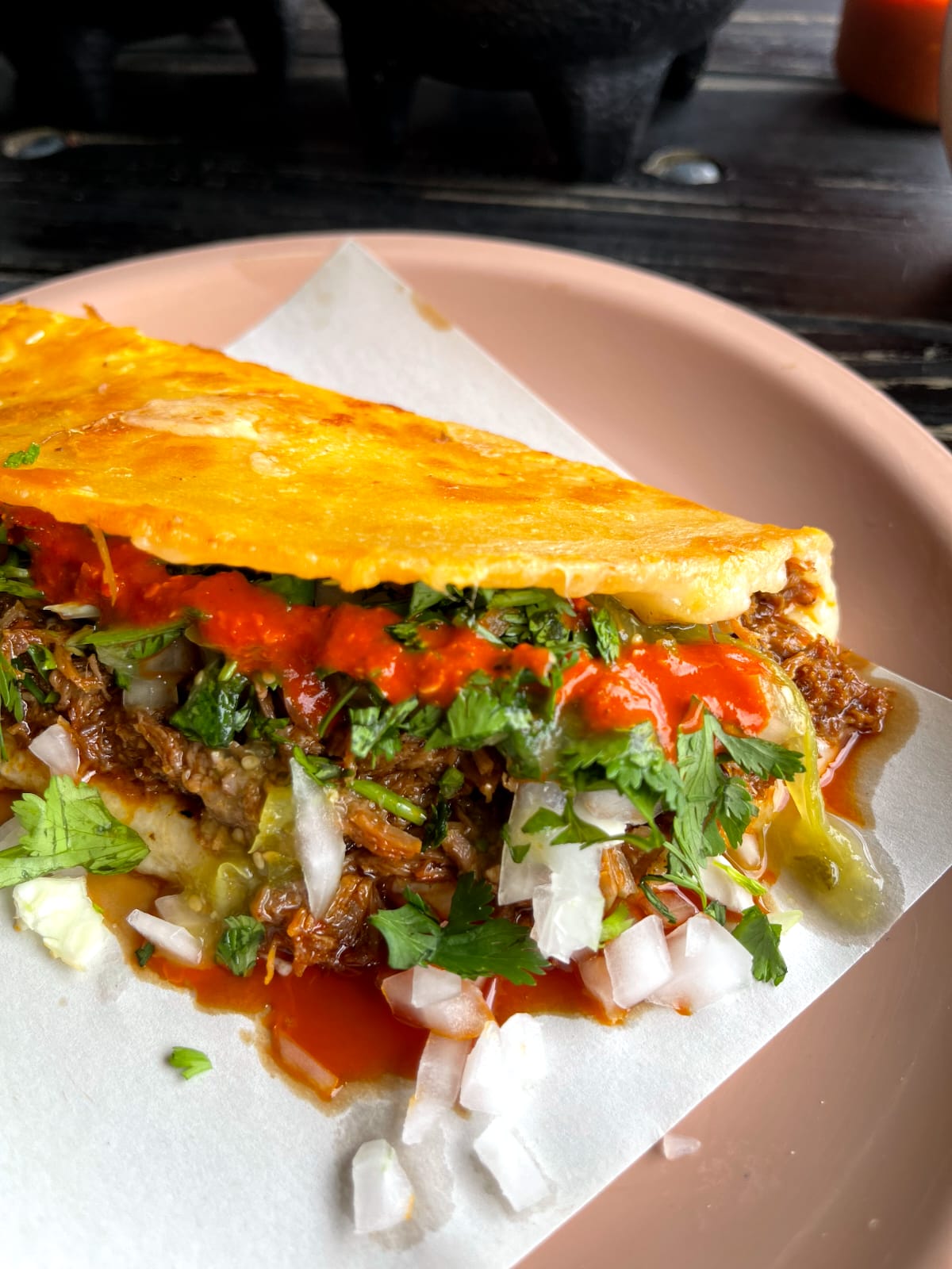Deliciosa quesadilla crujiente en tortilla de harina con nuestra deliciosa carne de tu eleccion y mucho queso.