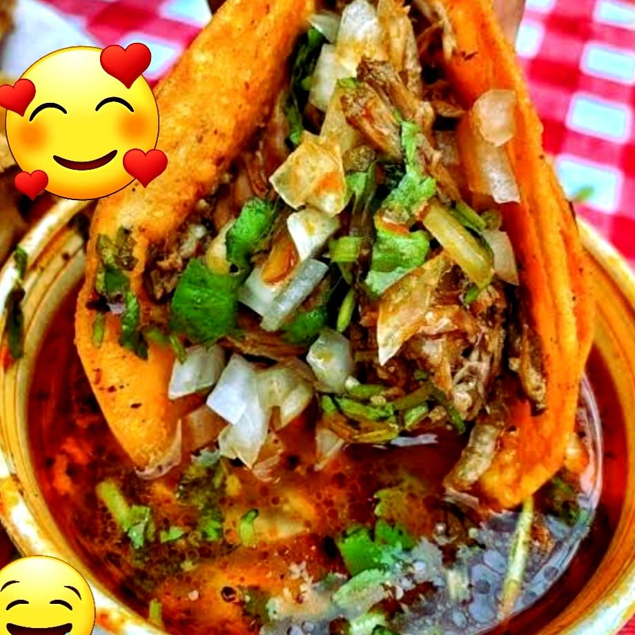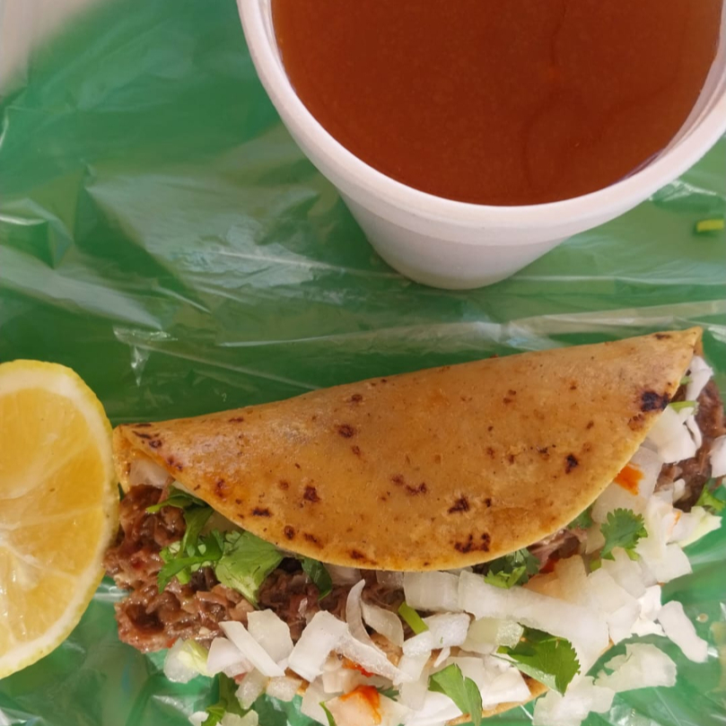 Cebolla, Repollo,Salsa Roja,onsome mediano,Tortilla maiz recien hechas .