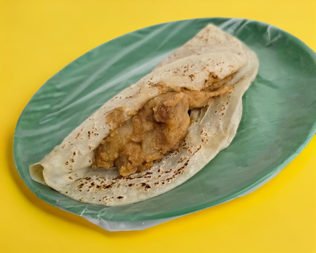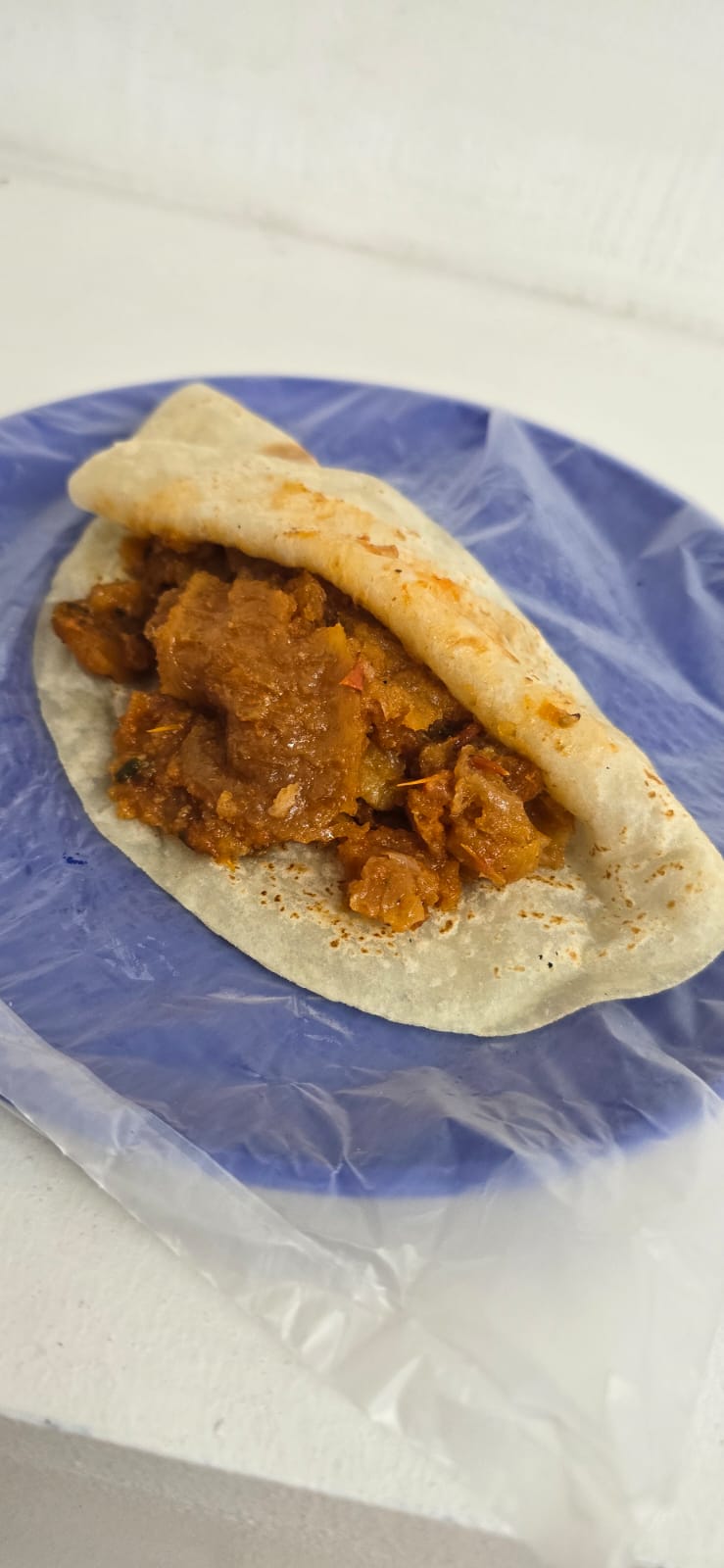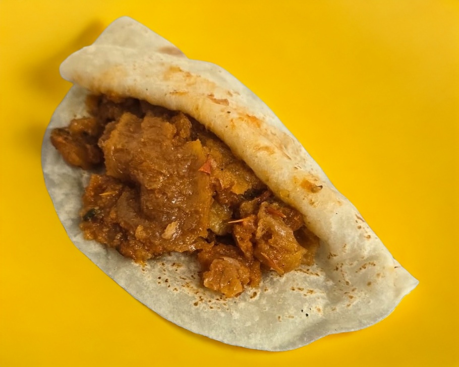 Taco con papas guisadas con chorizo, perfecto balance de sabores.