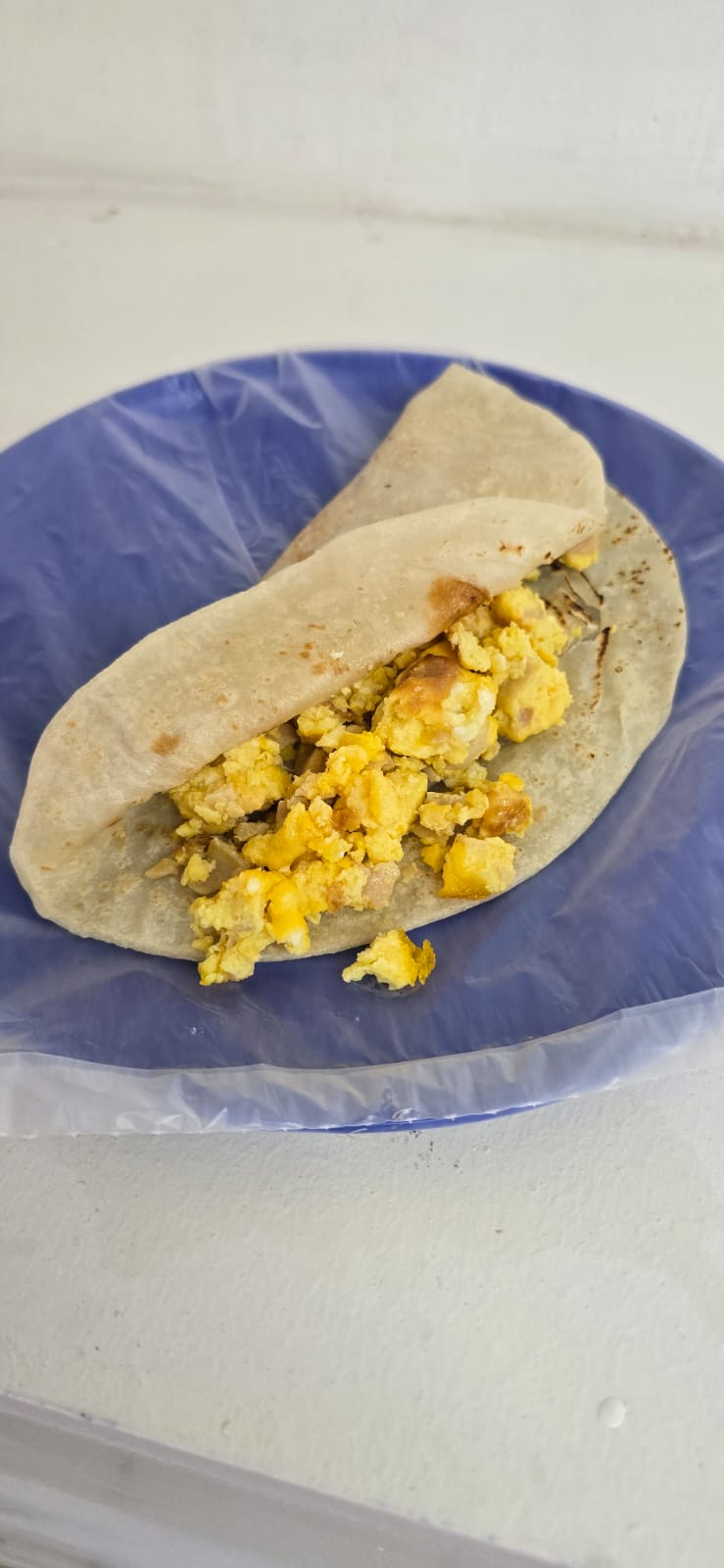 Taco con huevo revuelto con jamón, un clásico de desayuno.