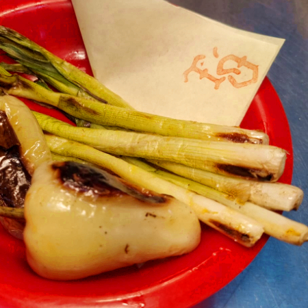 2 tacos de birria horneada de res con cebolla, cilantro y salsa macha de la casa. Acompañados de consomé, rabano, limon, chile guerito y cebollitas asadas preparadas.