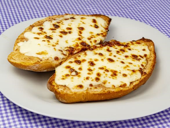 Dos piezas de molletes con frijoles, chorizo, y queso mozarella gratinado. Acompañados chiles en raja.