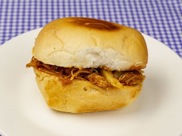 Bollo dorado en mantequilla, relleno de pollo con chipotle, tinga de pollo o carne deshebrada adobada de res.