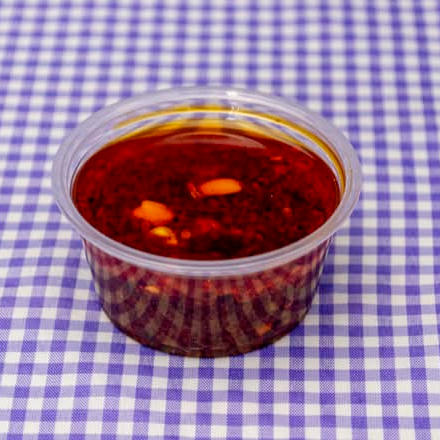Salsa macha artesanal de chiles (guajillo, morita, chipotle, ancho, pico de pájaro, árbol), ajonjolí, almendras, arándanos, cacahuate, tortilla tostada y aceite.
