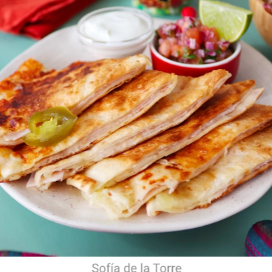 Jamon , queso, tortilla de harina y salsa