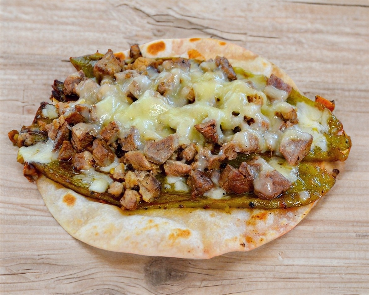 Tortilla, carne y queso doradito directo de la plancha.
