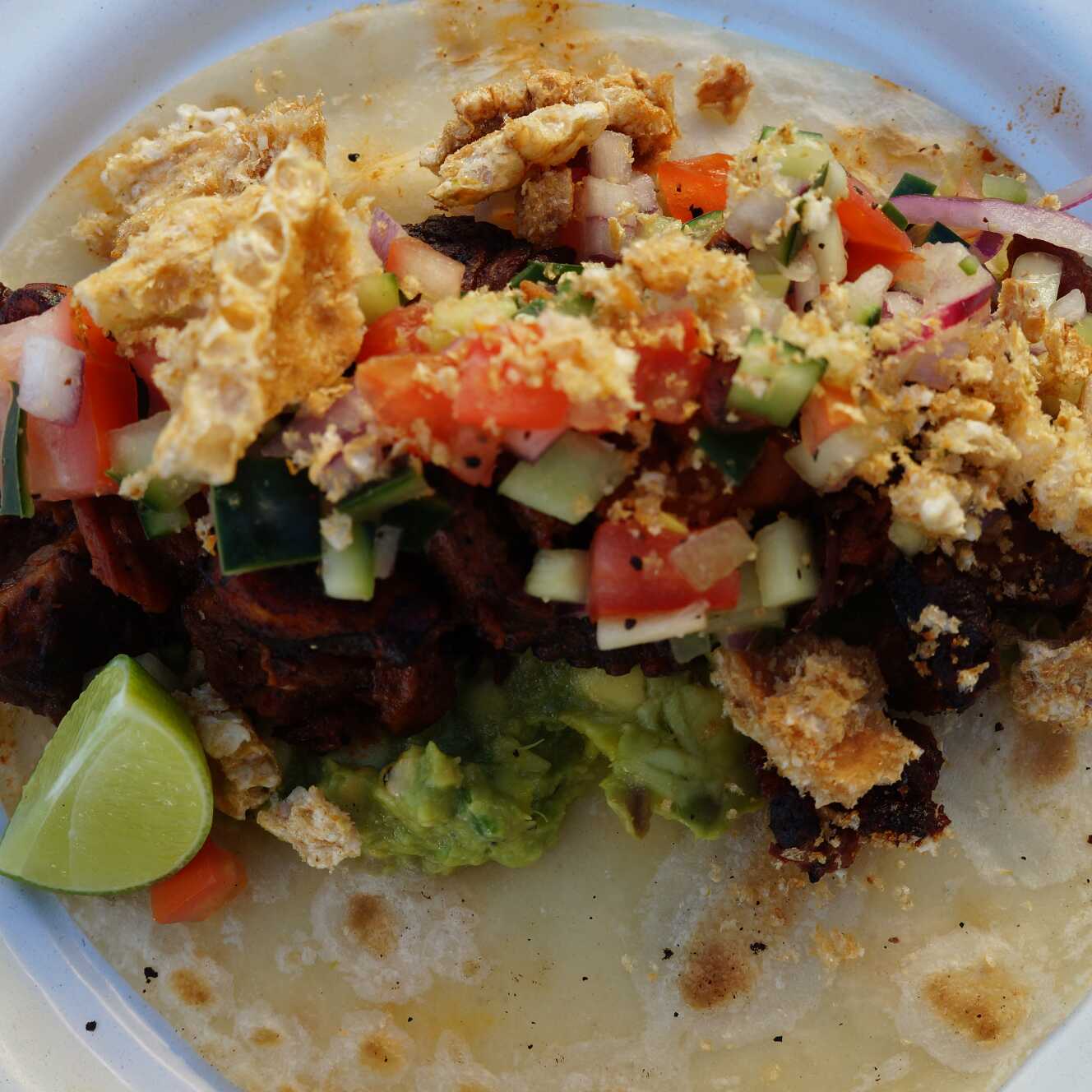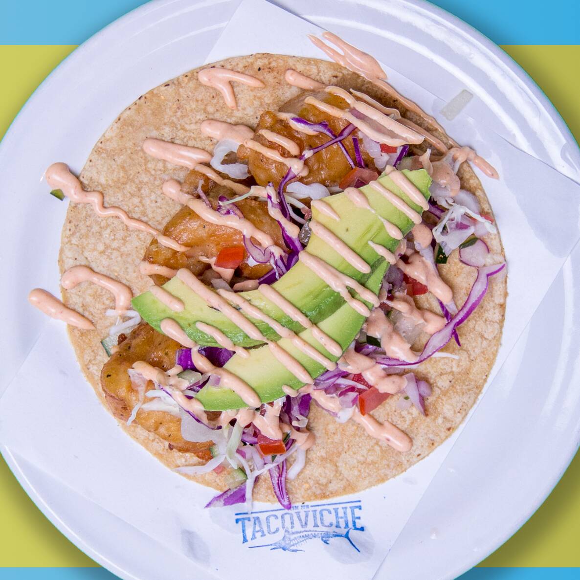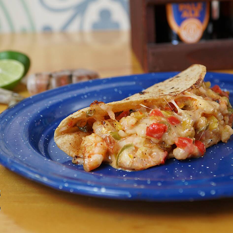 El ya famoso taco gobernador, acompañado de camarón, queso y pimientos al estilo de Tacoviche.